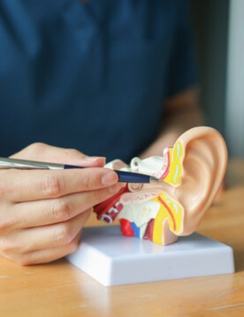 A cholesteatoma is an abnormal growth of skin cells in the middle ear behind the eardrum. Though non-cancerous, it can be dangerous because it gradually expands and damages nearby structures, including the bones of the middle ear. This can lead to hearing loss, ear discharge, dizziness, and even serious infections if left untreated. Using advanced microscopes and microsurgical techniques, the procedure carefully removes the cholesteatoma while preserving surrounding structures and improving hearing whenever possible.